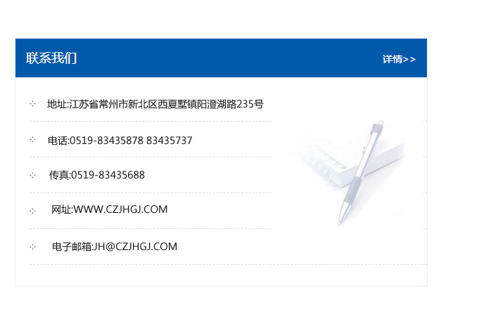 傳真:0519-83435688    郵編:213135    網址:WWW.czjhgj_com.bjrcfd.com    電子郵箱:JH@czjhgj_com.bjrcfd.com